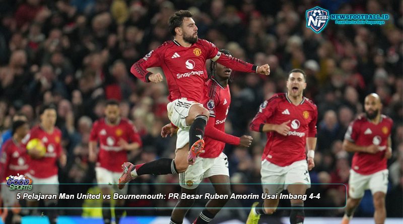 newsfootball.id – 5 pelajaran Man United vs Bournemouth menjadi sorotan utama usai duel gila berakhir imbang 4-4 di Old Trafford, Selasa (16/12/2025) dini hari WIB. Hasil ini bukan sekadar pertandingan penuh hiburan, tetapi juga menyingkap pekerjaan rumah besar yang masih membebani Ruben Amorim, terutama di sektor pertahanan Manchester United.